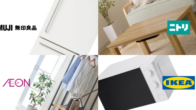- 新生活の家具家電を全部揃えると?無印・ニトリ・イオン・IKEA【2025年 最新版 まとめ】春の新生活応援シーズン。ひとつの店で基本の家具・家電を揃えるならどこ… 続きを読む: 新生活の家具家電を全部揃えると?無印・ニトリ・イオン・IKEA【2025年 最新版 まとめ】