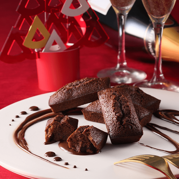 くちどけにこだわった『フィナンシェ・ガナッシュ・ショコラ』。定番フィナンシェのショコラバージョンで、クリスマス時期だけの特別な味わいです。4個入りセットの他、プレーンフィナンシェとの10個セットを用意。赤を基調とした大人可愛いクリスマス限定パッケージで、さりげないプレゼントにも最適!