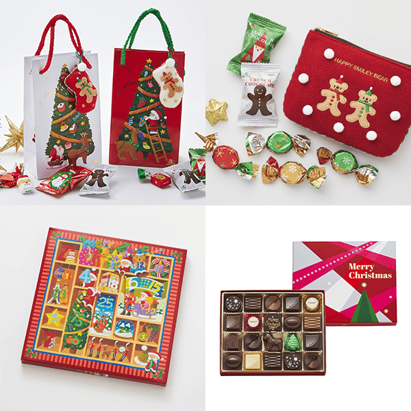 今回の目玉は可愛いマスコットチャーム付きギフトバッグのチョコギフト『クリスマストゥリンキット』と、ベアサンタのアップリケがついた激かわポーチのチョコギフト『クリスマスポーチ』!当日までのカウントダウンを楽しめる『ホリデースイートカレンダー』、ブック型パッケージのチョコギフト『クリスマスブック』、切手を貼って郵送できる板チョコ『クリスマスカード』など、美味しいだけじゃなく楽しめる工夫がされたギフトが特徴。そのほかクリスマスモチーフのプレーンチョコの詰め合わせもあり。子ども向けのビジュアルですが、つい買いたくなってしまいます…。