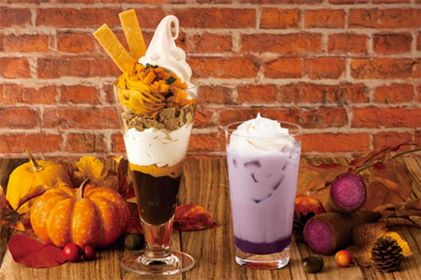 かぼちゃあんを使用したパフェと、紫いものラテを発売。